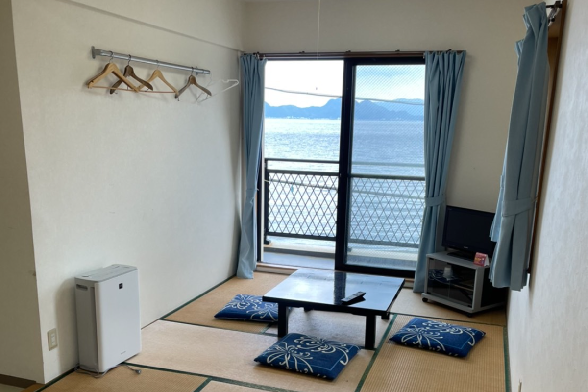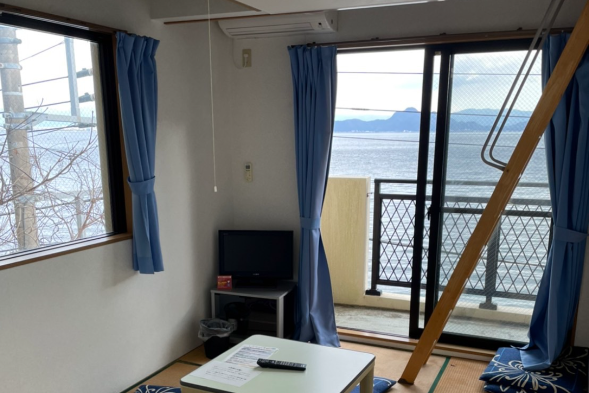 2階の大広間で海を見ながら仲間と海の話で盛り上がるのもよしの、絶景部屋。くつろぎのひとときを。